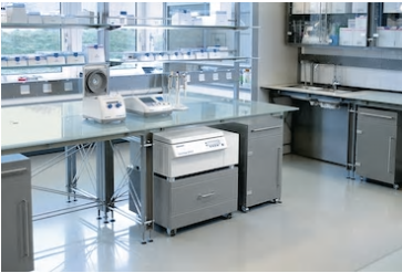 › 固定在滑輪柜上的離心機適合放置在90 cm的標準實驗室桌面下.