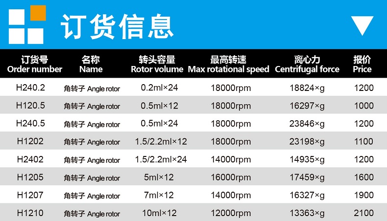 | H1202 | 角轉(zhuǎn)子 | 1.5/2.2ml*12 | 18000rpm | 23198*g |