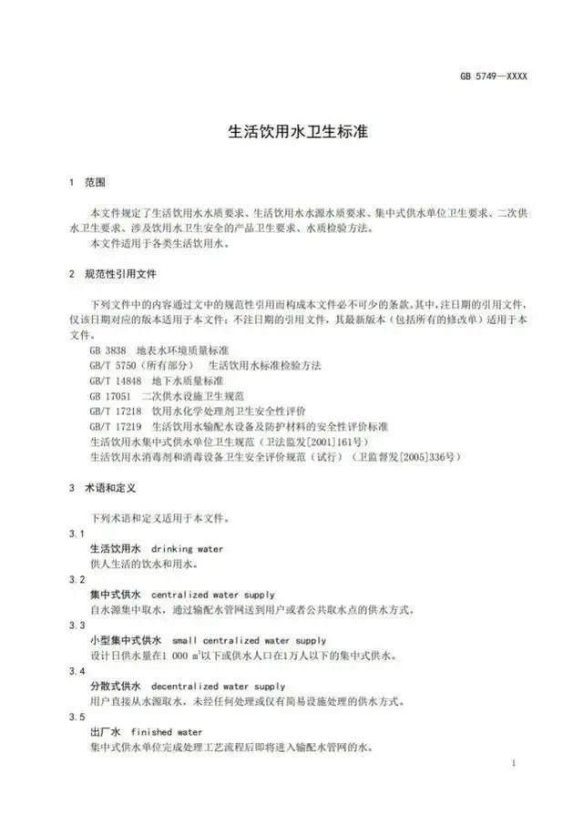 其中《生活飲用水衛(wèi)生標(biāo)準(zhǔn)》(GB 5749-2022)由國家衛(wèi)生健康委員會歸口上報及執(zhí)行,主管部門為國家衛(wèi)生健康委員會,將全部代替現(xiàn)行的 GB5749-2006,于 2023年4月1日 開始實施。目前,全國標(biāo)準(zhǔn)信息公共服務(wù)平臺暫未正式發(fā)布標(biāo)準(zhǔn)全文,預(yù)計于4月上旬公布(發(fā)布后20個工作日內(nèi))。